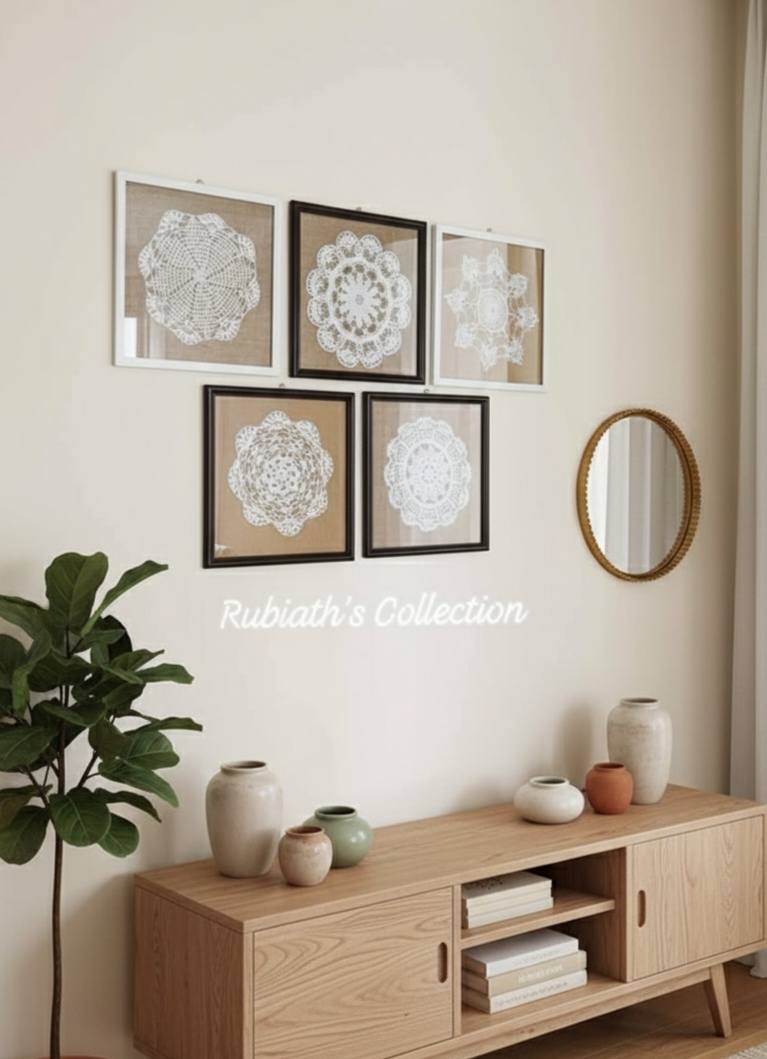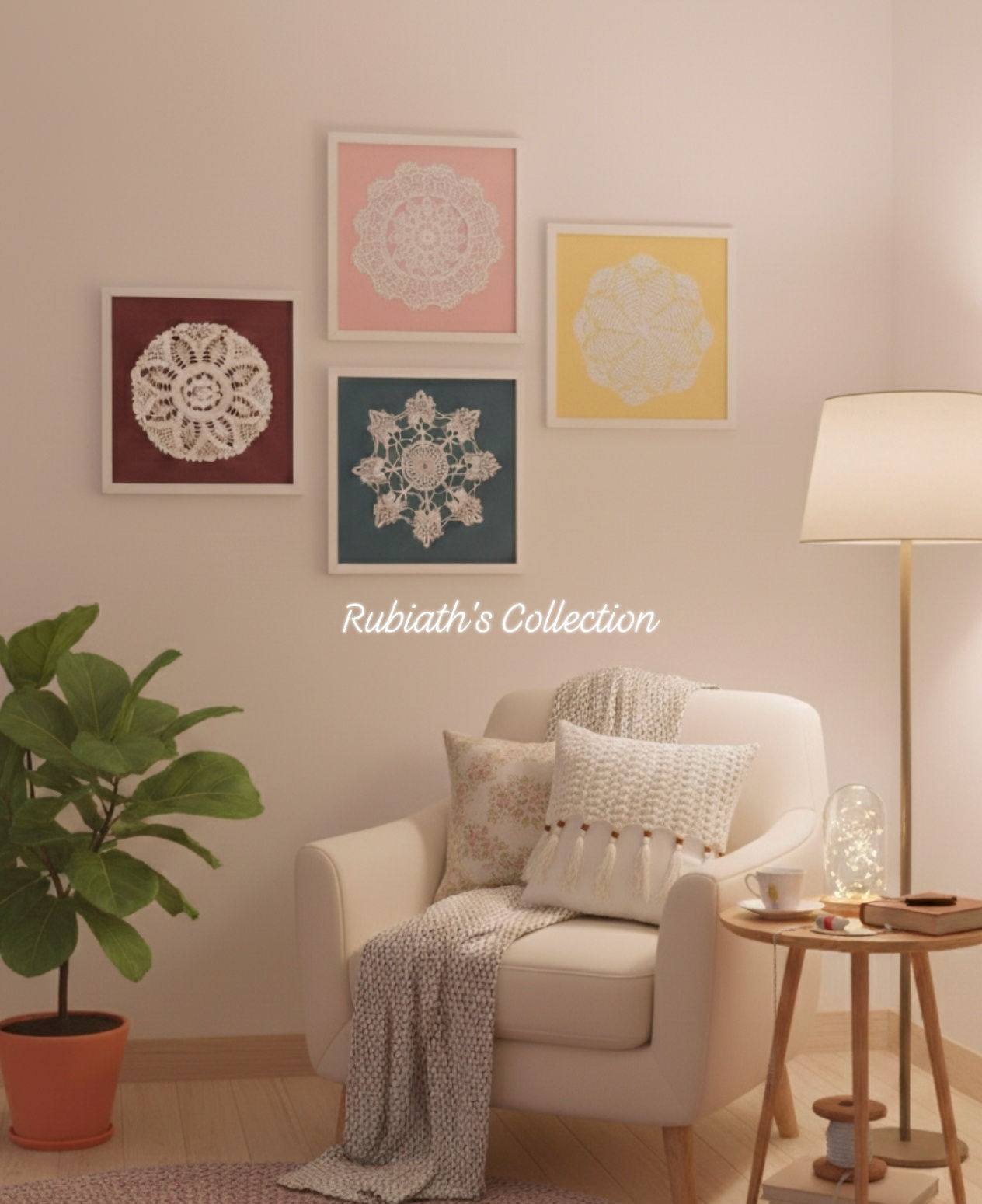 আমাদের Crochet Wall Décor-এর নিপুণ, পুনরাবৃত্তিমূলক প্যাটার্ন আপনার চোখ এবং মনকে একটা মেডিটেটিভ ফোকাস দেয়।